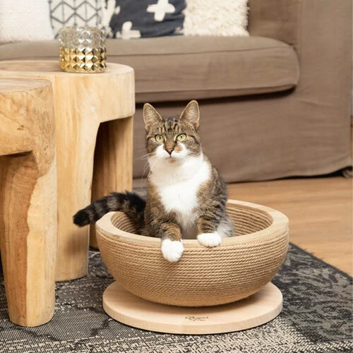 Designed by Lotte Zaina kann Ihre Katze wegen der Jutepolsterung als Kratzbaum verwenden, aber auch als Körbchen.