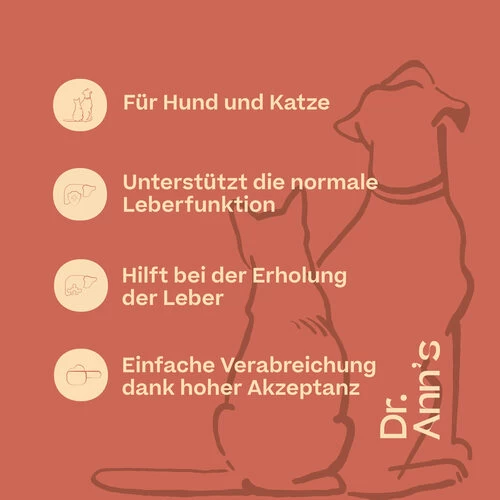 Die Leber ist zweifelsohne ein wichtiges Organ des Körpers. So spielt sie beispielsweise eine wichtige Rolle bei der Verdauung von Nährstoffen wie Fett. Außerdem werden viele Nährstoffe in der Leber gespeichert. So kann der Körper immer mit Energie versorgt werden. Die Leber reinigt Abfallprodukte und produziert wichtige Proteine, die unter anderem für das Blut und das Immunsystem benötigt werden. Dr Ann’s Liver Support ist ein Ergänzungsfuttermittel für Hunde und Katzen zur Unterstützung der Leber.