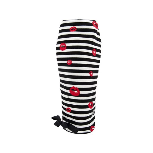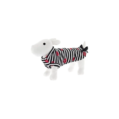 Mit dem Jumper Kiss sieht Ihr Hund wirklich süß aus! Dieser schöne Hundehosenanzug aus 100% Baumwolle ist schwarz-weiß gestreift und hat einen Druck von roten Küssen. Der Pullover von Ferribiella hat einen stylischen Bootshals und ist mit einer süßen Schleife ausgestattet.