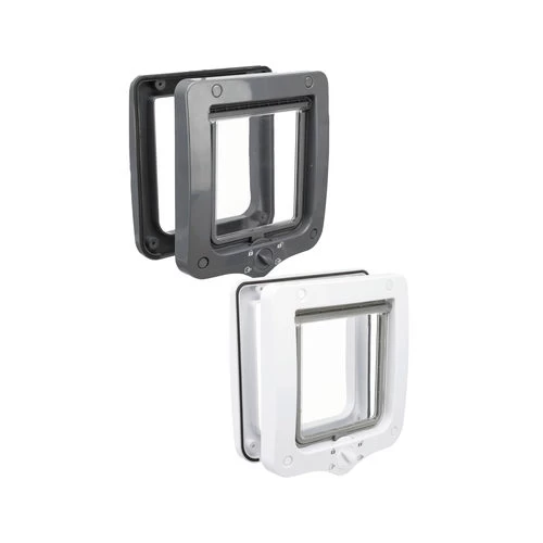 Die 4-Wege-Freilauftür von Trixie ist eine Katzenklappe mit einer 4-Positionen-Sicherheitsverriegelung. Die Katzenklappe ist auch für kleine Hunde geeignet.