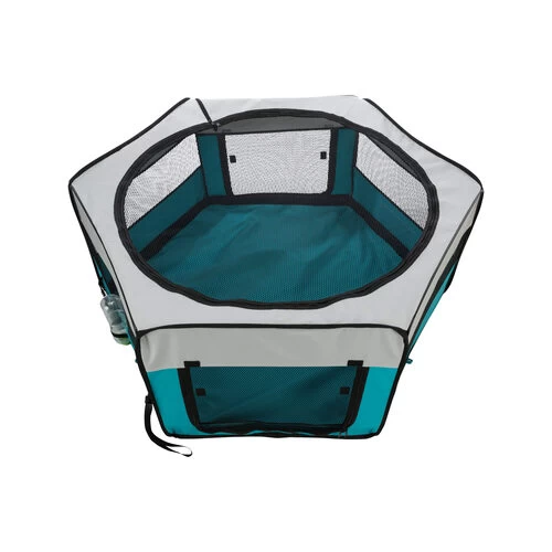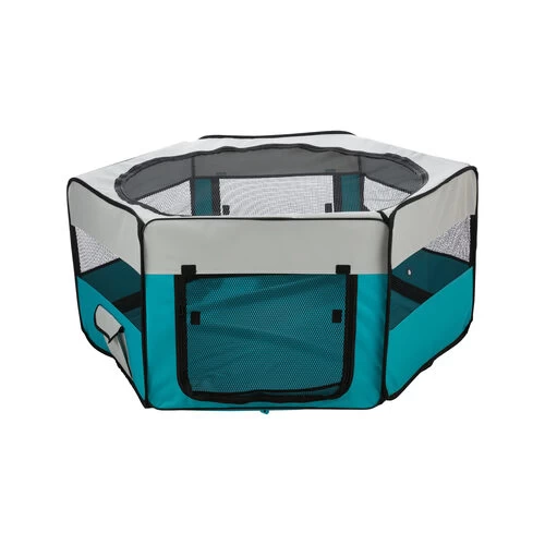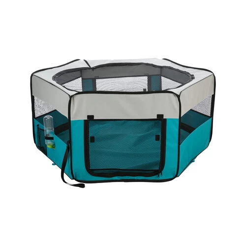 Dieser Freilauf kann drinnen oder draußen verwendet werden und hat einen abnehmbaren Boden. Er sich leicht zusammenlegen und aufstellen und wird auch mit einer praktischen Transporttasche geliefert. Das Oberteil ist abnehmbar und kann bei 30 Grad von Hand gewaschen werden. Dieser Auslauf ist auch sehr gut für Welpen geeignet.