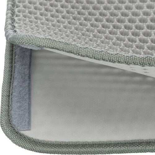 Dank der siebartigen Oberfläche fängt die Matte leicht die Katzenstreu auf! Die Matte ist aus weichem Material gefertigt, was ein einfaches Biegen ermöglicht, um die gesammelte Katzenstreu zu entfernen. Die Reinigung der Matte ist dank des offenen Designs ebenfalls einfach. Die zwei Lagen können mit einem Klettverschluss miteinander verbunden werden.