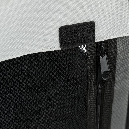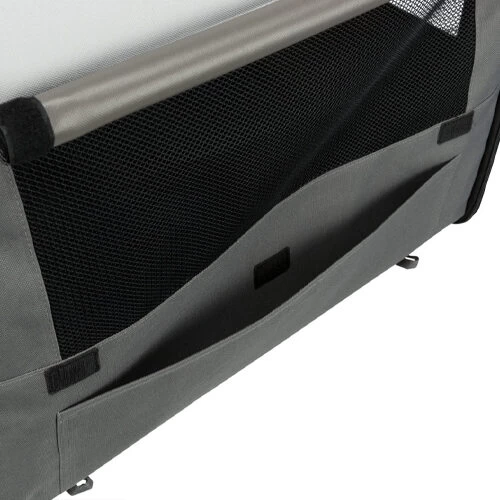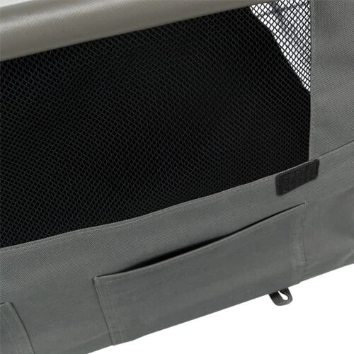 Die Basic-Box ist die perfekte Kiste für Ihren Hund. Die Seiten der Box sind mit einem Netz versehen, so dass Frischluft und Tageslicht ungehindert eindringen können. Diese können ebenfalls abgedeckt werden. An der Oberseite befindet sich ein Griff zum einfachen Anheben und an der Seite gibt es 3 Außentaschen zur Aufbewahrung. Die Bodenplatte ist für einen bequemen Schlafplatz mit Vlies überzogen. Dank der Schlaufen am Boden und der Heringe kann die Bank auch im Freien verwendet werden.