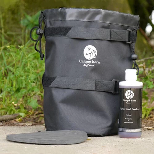 Das Einweichen einer Hufe kann eine ziemliche Herausforderung sein. Der Hufeinweichbeutel von Unique-horn hilft bei der Vorbeugung von Hufrehe und Hufgeschwüren.